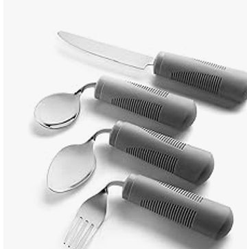 Built-up eating utensils have larger, easy-to-grip handles that make it easier for seniors with limited hand strength or arthritis to hold and control. They support independence by improving comfort and reducing frustration during meals.