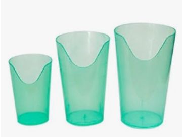 A nose cut-out cup features a contoured rim that allows seniors to drink without tilting their head back, making swallowing easier and safer. It supports independence by promoting proper positioning and reducing the risk of choking.