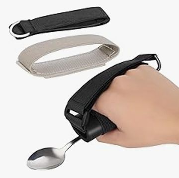 A universal cuff helps seniors with weak or limited hand grip hold items like eating utensils, securely. It promotes independence by reducing the need for strong grasping during daily tasks.